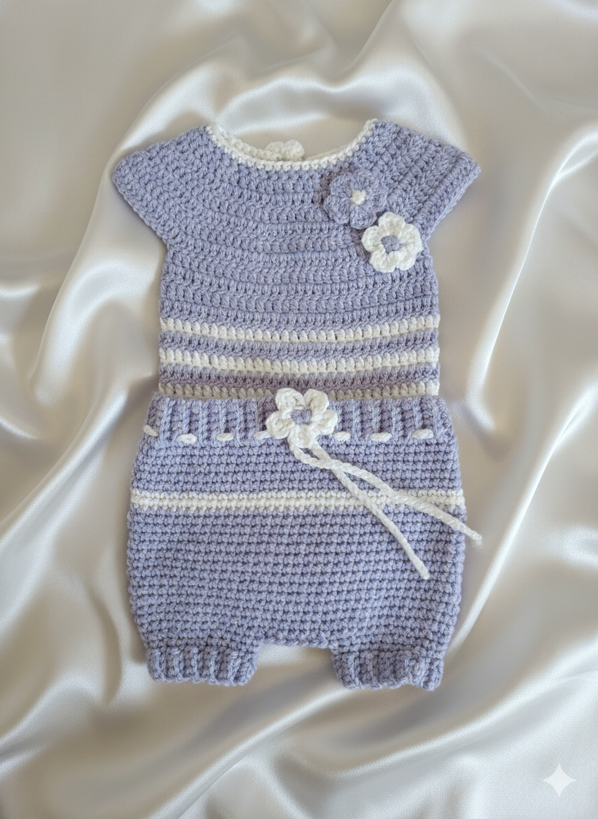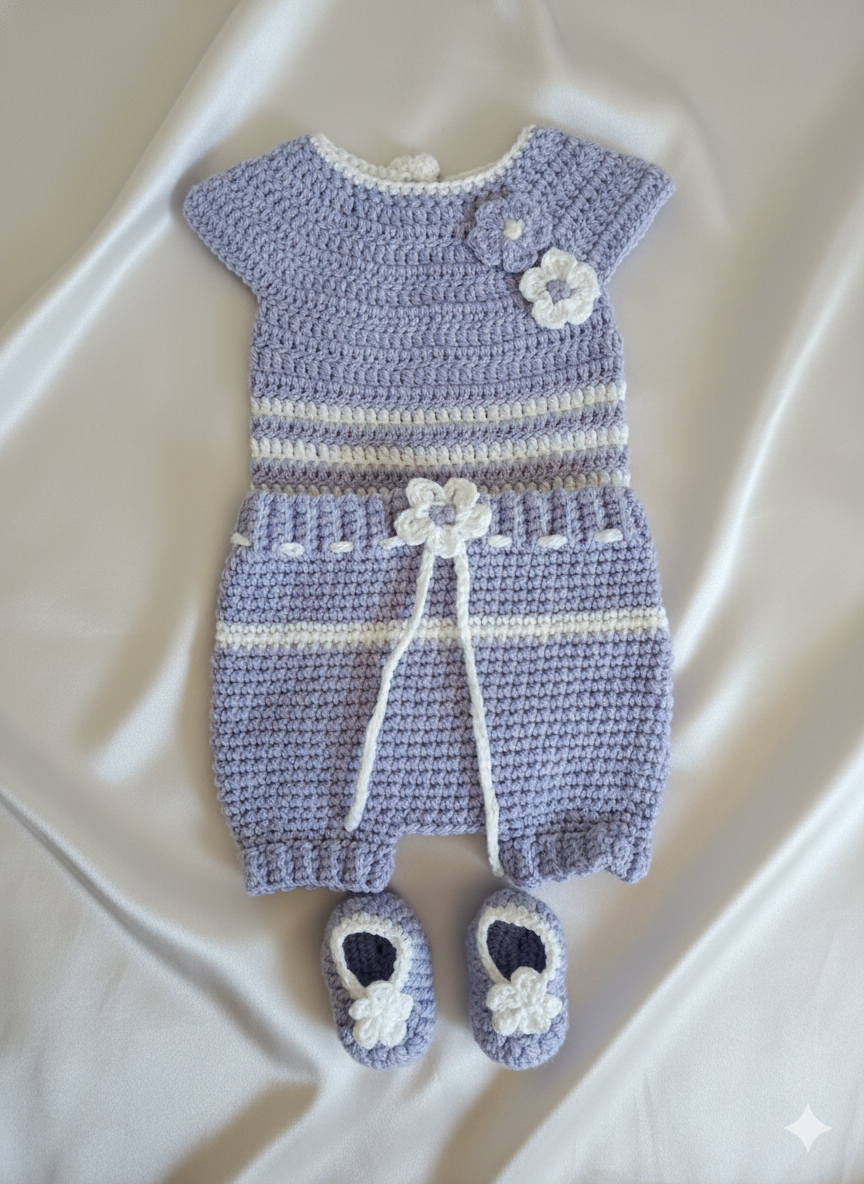 Usage : Cet ensemble complet est une merveilleuse idée de cadeau de naissance, idéal pour des photos de bébé, des sorties douces ou simplement pour habiller une petite fille avec tendresse et originalité. Le travail artisanal soigné en fait une pièce unique et précieuse.