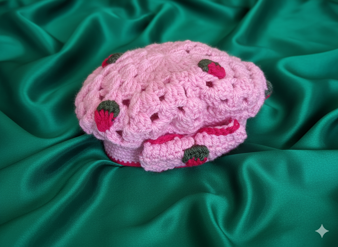 - Couleur et Thème : La couleur principale est un rose bubblegum ou rose bonbon vif, très girly, contrastant avec le fuchsia (pour les bords) et le vert forêt (pour les petites feuilles). Le thème est celui des fraises des bois.