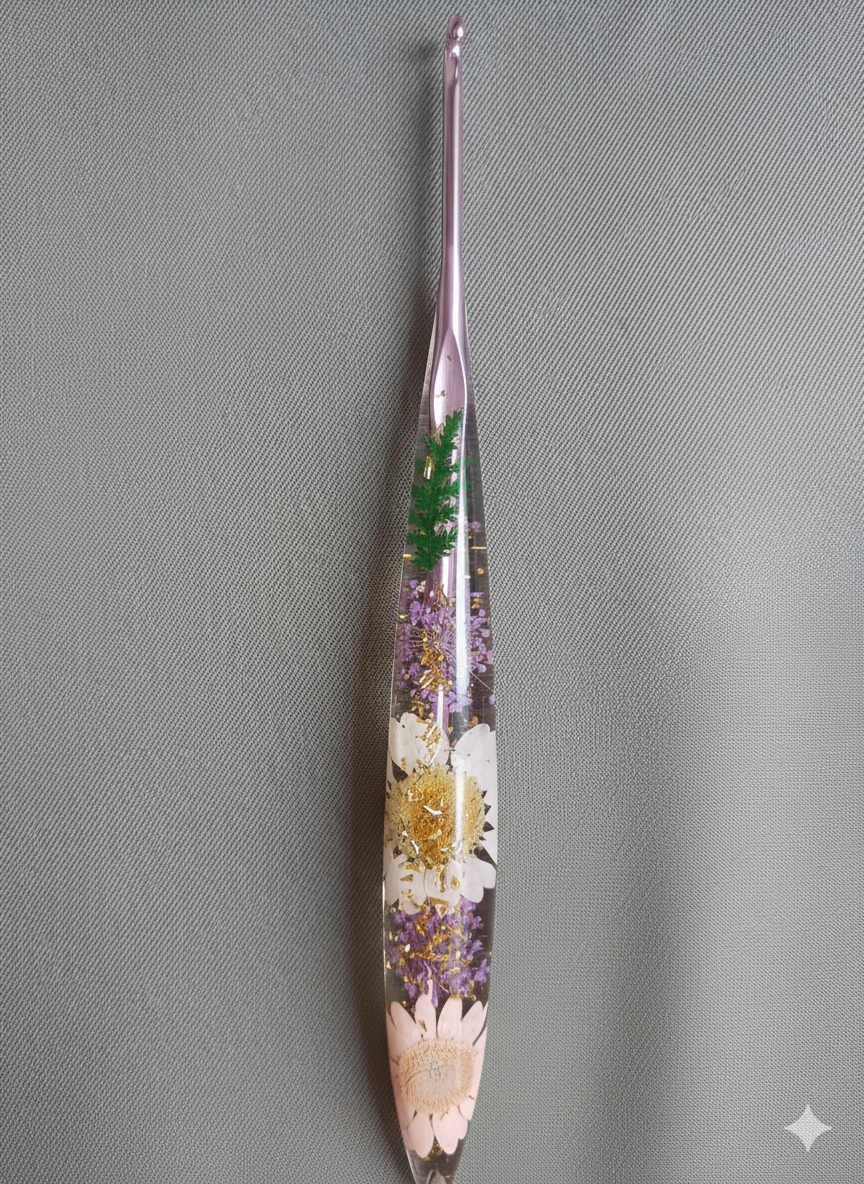Crochet Ergonomique Artisanal – Résine Cristalline (Collection Fleurs Séchées)