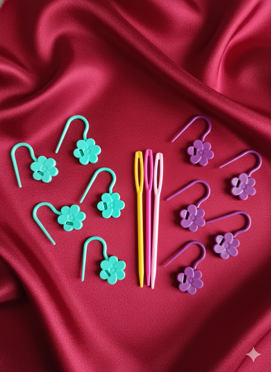 Kit de Finition “Fleur” Marqueurs et Aiguilles à Laine