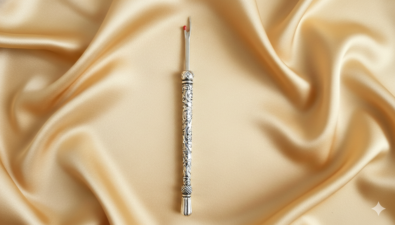 Chaque découseur présente un manche finement ciselé avec un motif baroque riche en volutes et arabesques. Leur poids et leur forme offrent une prise en main ergonomique et un grand confort d’utilisation.