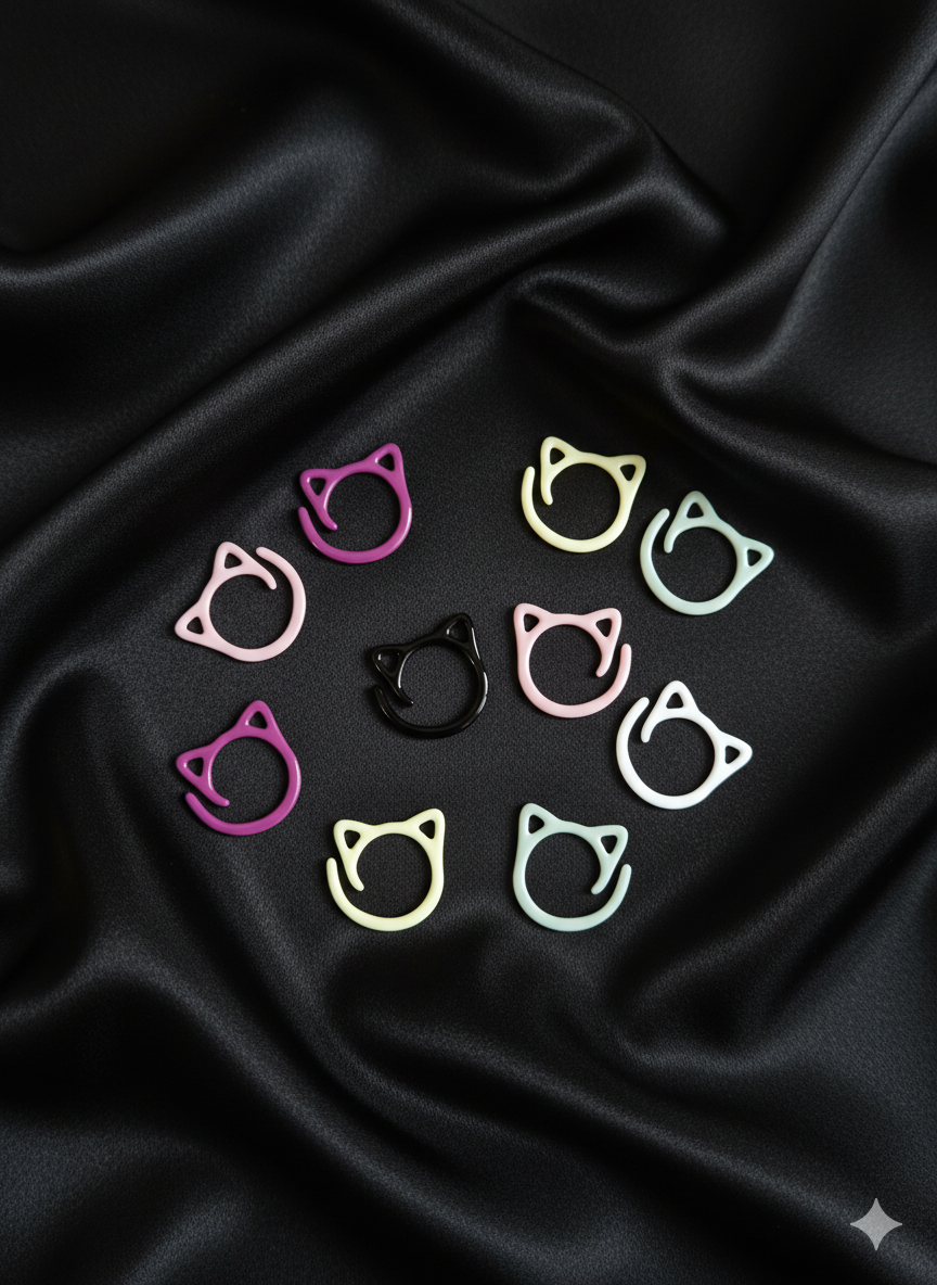 Fonction : Conçus comme des anneaux ouverts pour se glisser et se retirer rapidement des aiguilles, marquant les mailles sans effort.