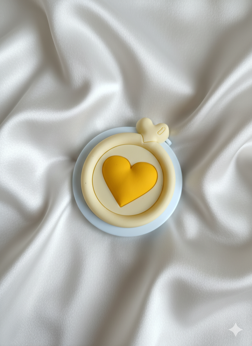 - Design Romantique : Boîtier compact orné d’un cœur en relief, disponible en plusieurs couleurs douces (rose ou jaune, au choix).