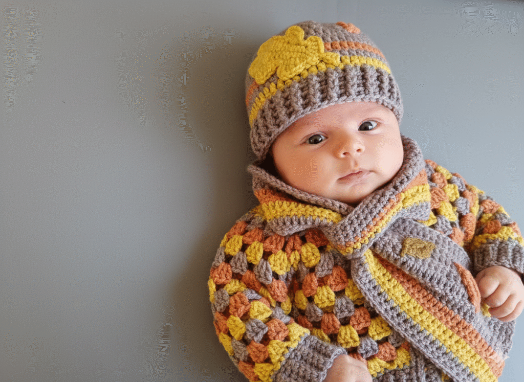 🐻 Ensemble “Ours Polaire” (3 Pièces) | Crochet Fait Main (1-3 Mois)